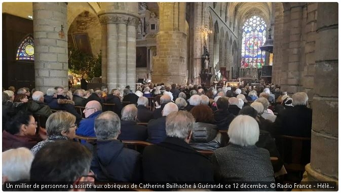 Au cours de la cérémonie, où étaient présents le maire et la député macroniste Sandrine Josso, le père Paul-Antoine Drouin va évoquer le crime à plusieurs reprises. « On pourrait être tenté par la violence intérieure, la haine, mais ce que Catherine nous laisse comme dernier message dans son dernier combat, c’est bien tout l’inverse. Continuez d’ouvrir votre cœur et votre porte sinon le mal aura triomphé ».