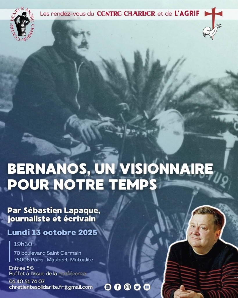 Lundi 13 octobre , à Paris : une conférence sur Bernanos au Centre Charlier