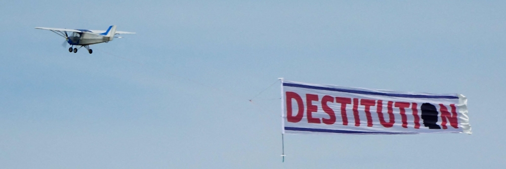 Pilote d'ULM et fondateur de l'association "Destitution et référendum", David Van Hemelryck parcourt la France en ULM arborant une banderole "Macron destitution". Il sera en Vendée sur l’invitation du président du Rassemblement vendéen, Éric Mauvoisin-Delavaud, pour témoigner et dédicacer son livre...Dimanche 16 novembre, à 15 h...