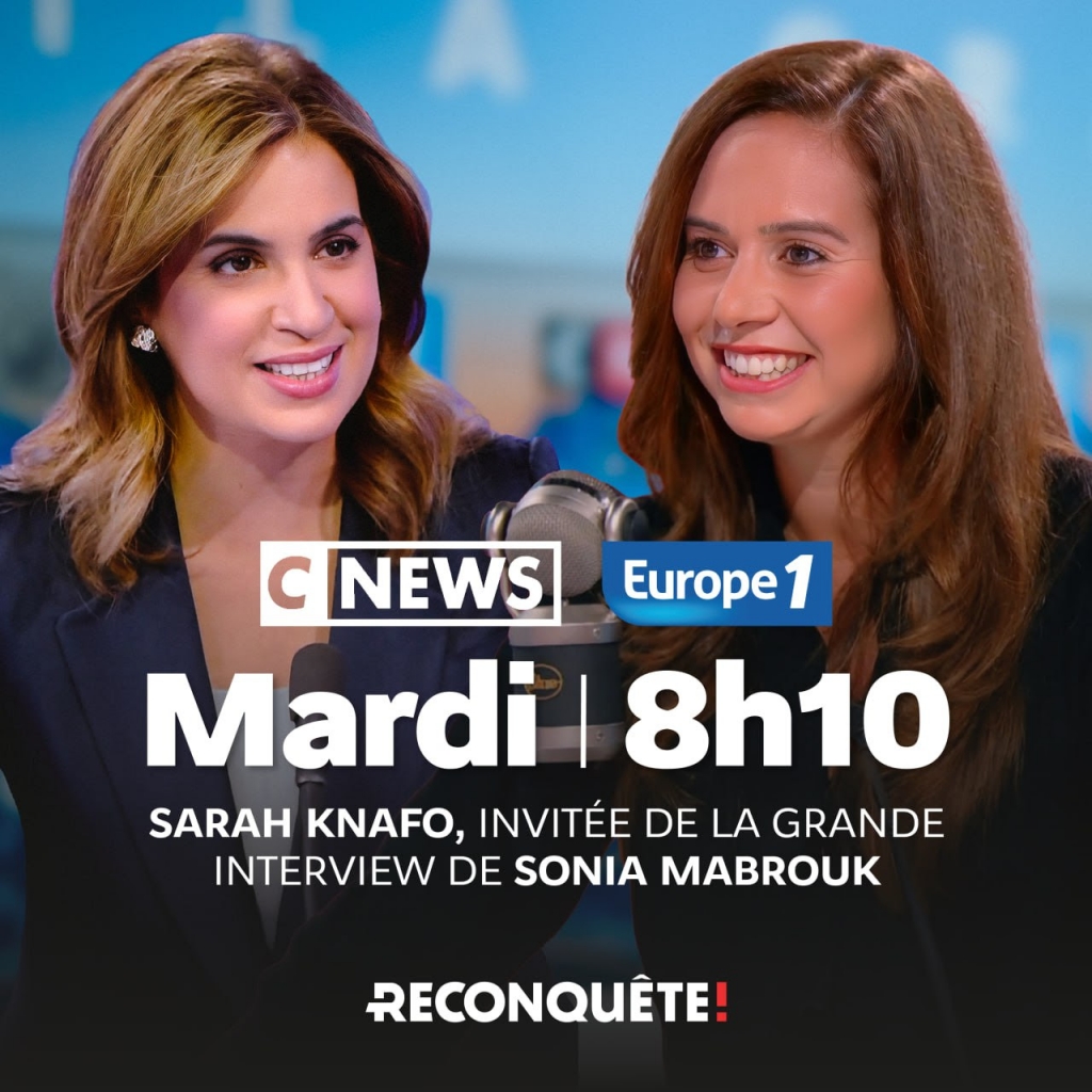 Mardi 18 novembre, à 8 h 10 sur C News et Europe 1 : Sarah Knafo invitée par Sonia Mabrouk
