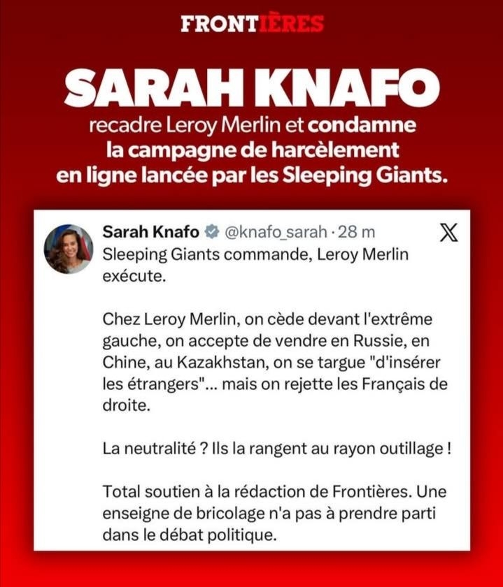 Leroy-Merlin : Sarah Knafo apporte son soutien à Frontières