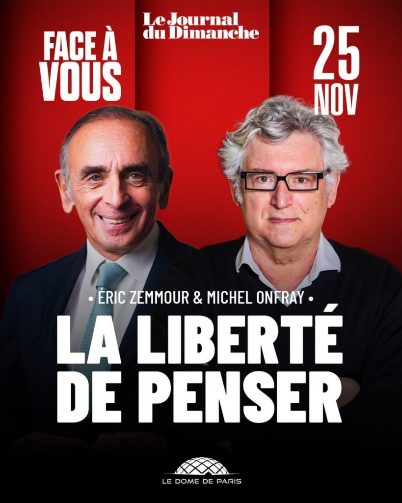 Mardi prochain, au Dôme de Paris : soirée du JDD avec, entre autres Eric Zemmour, Michel Onfray et Sarah Knafo