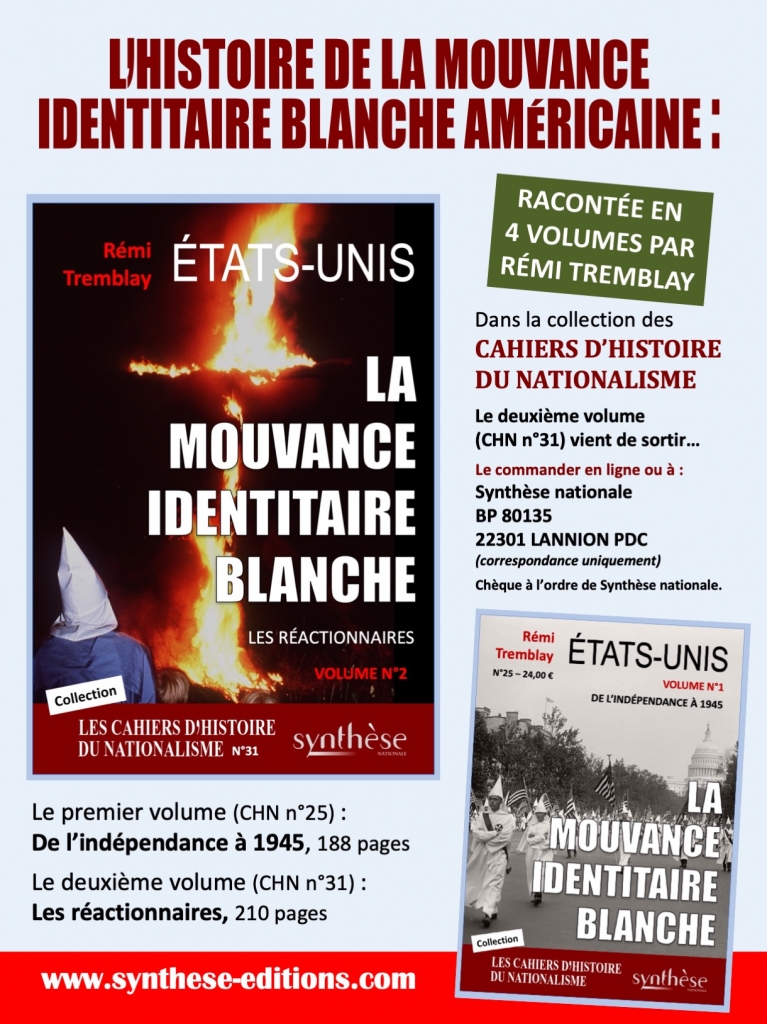 LE DEUXIÈME VOLUME SUR LA MOUVANCE IDENTITAIRE BLANCHE AMÉRICAINE (CHN n°31) EST SORTI