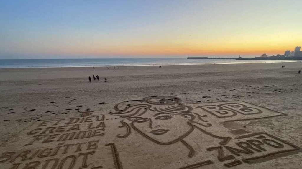 Une fresque hommage à Brigitte Bardot dessinée sur la grande plage des Sables-d’Olonne