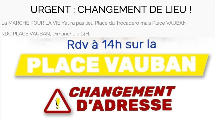 Marche pour la Vie : 18 janvier 14 h PLACE VAUBAN à Paris