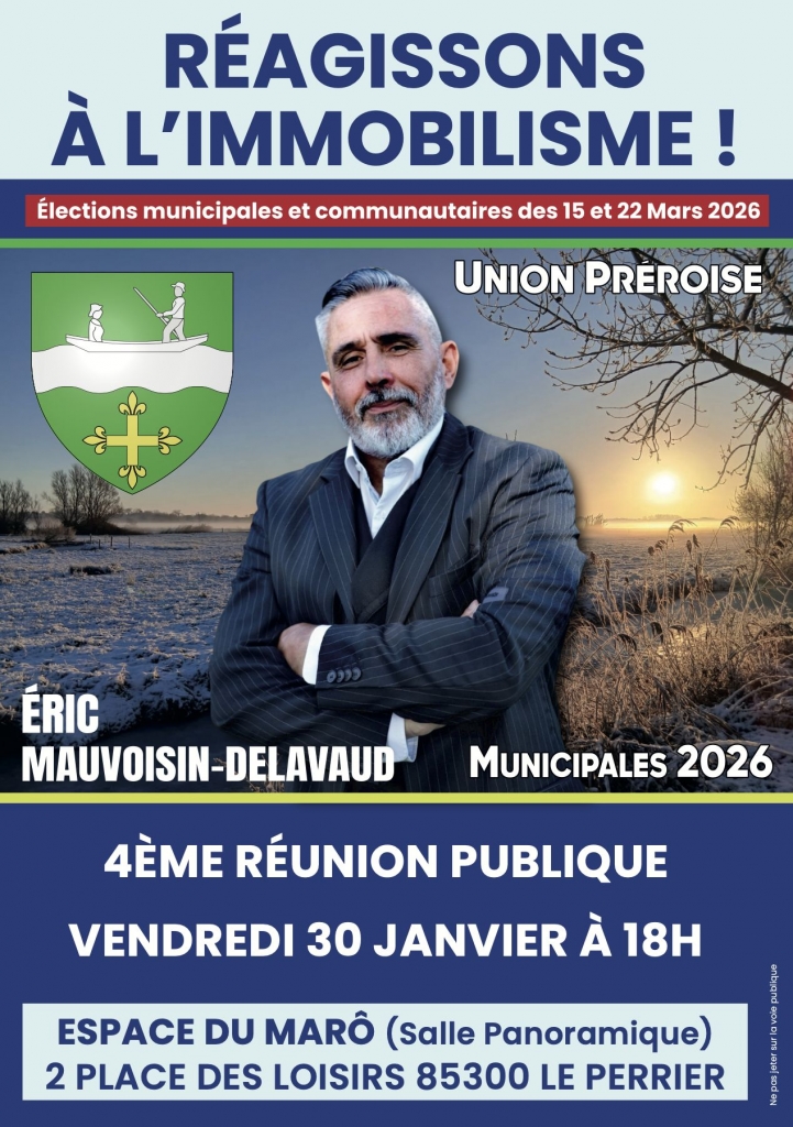 Vendredi 30 janvier, au Perrier en Vendée : réunion électorale de Eric Mauvoisin-Delavaud, candidat aux municipales