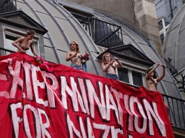 Souvenez-vous, c'était le 12 mai 2013 à Paris, les Femen provoquent la manifestation nationaliste unitaire de Jeanne d'Arc cliquez ici