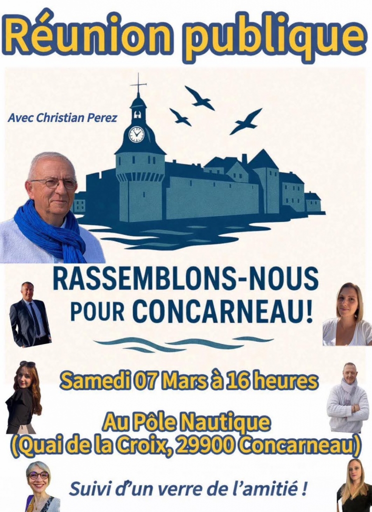 Concarneau (29), samedi 7 mars : réunion publique de Christian Perez, tête de liste de la droite nationale