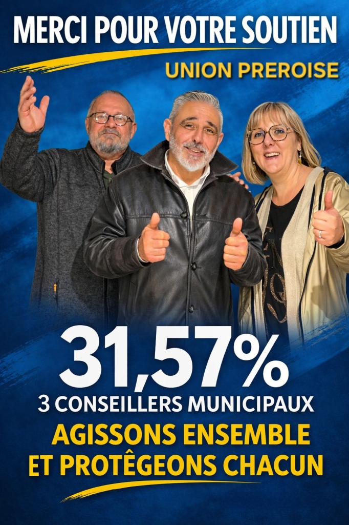 Toute l'équipe de Union Prèroise tient tout simplement à vous dire merci. Merci pour votre courage, votre confiance et votre envie de voir les choses bouger.