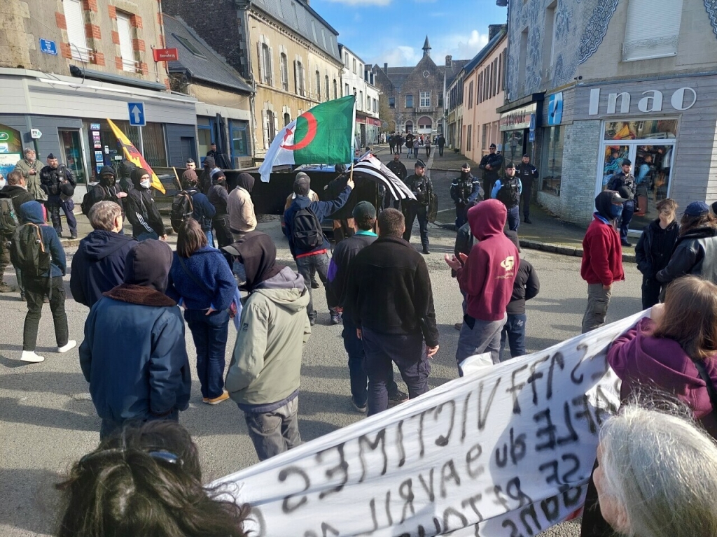 Callac : la gauche manifeste contre le RN avec un drapeau algérien